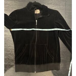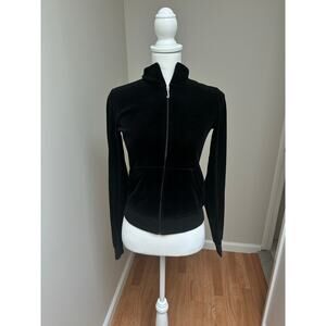 Vintage Y2K Juicy Couture Black Velour Zip Up Small