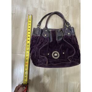 Vintage Y2K Juicy Couture Dark Purple / Maroon Velour Hobo Bag Metal Medallion