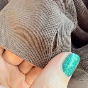 @axt93 Hi! The terry cloth is more a true brown and the ribbed trim is more taupe-gray brown, picture 4 is very true to the way it all looks.