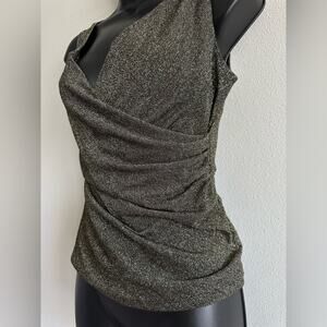 Vintage Y2K KIKIT Metallic Ruched Surplice Tank Top USA Sz S 2000s Glam