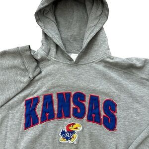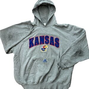 Vintage Y2K Kansas Jayhawks Men’s Adidas Hoodie Size XL Gray Thrashed NCAA