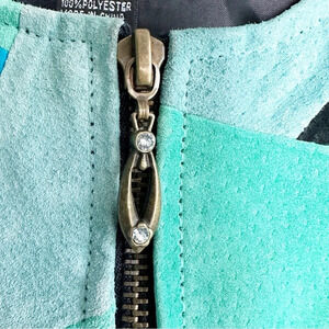 Vintage Y2K Karen Arnold Suede Jacket Blue Green Patchwork Size Medium Zip Front