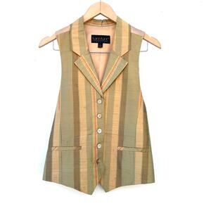 Vintage Y2K Karen Kane Silk Vest Striped Menswear Preppy Waistcoat Medium 90s