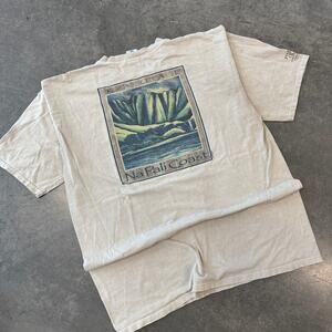 Vintage Y2K Kauai Napali Coast Beige Surf Nature Graphic Tee Crazy Shirt XL