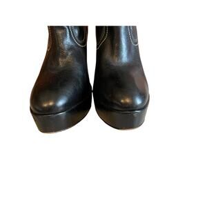 Vintage Y2K Kenneth Cole Embroidered Leather Platform Boots in Black, size 8. These stunning retro boots have a Western pop punk Vibe and features a pull on style, wedge heel and platform along with eye catching white contrast embroidery on heel and contrast stitching. Pull on. Almond toe. These are gorgeous and in very good preowned condition.