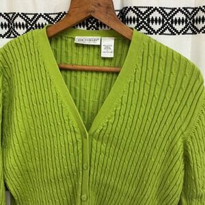 Vintage Y2K Kim Rogers Green Cardigan Sweater L 100% Cotton Button Front