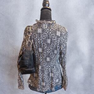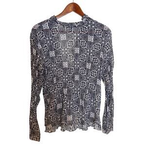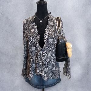 Vintage Y2K Kim Roger’s Signature Printed Sheer Tie Front Blouse Large
