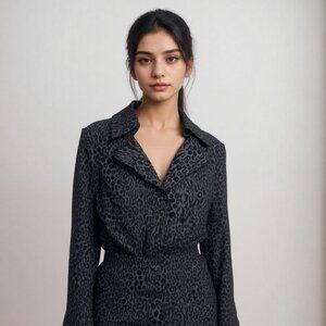 Vintage Y2K Black & Gray Kirna Zabete Lip Print Belted Trench/Dress Sz XL