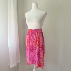 Vintage Y2K Kristin Nicole Pink & Orange Floral Print High Low Stretchy Skirt