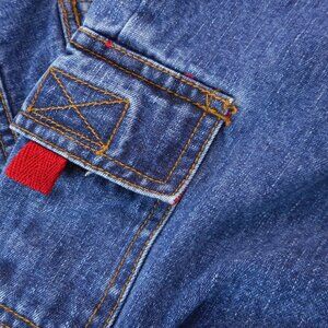 Features: Bib overalls, adjustable straps, flap pockets, button closures at the sides