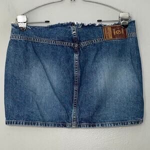 Vintage Y2K LEI Denim Skirt Size 8 9 Low Rise Button Fly Micro Mini Blue Jean