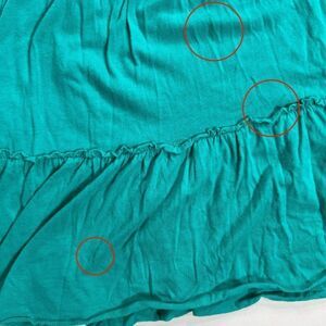 Features neck tie, ruffle hems, open back design, and built-in bra. This beautiful, minimalistic dress is perfect for the summer! The teal color is bright and beautiful, and the fit is flattering to all! It's a youthful, versatile addition to any wardrobe.There are a couple faint spots on front (see pictures).