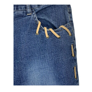 Vintage Y2K LIPS Lace Side Split Leg Flared Inset Jeans Hippie Boho Sz 13