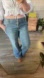These Vintage Late 90s/Early Y2k Jeans from Lauren Ralph Lauren are Made in Indonesia and and constructed in 100% Cotton medium wash blue denim fabric. They feature a mid rise, 2 brass button zipper fly front closure, belt loops, front welt slant pockets, front western seam details, right flap brass button closure patch pocket, perfectly placed factory whiskering and a a wide slightly flared leg silhouette. These are boho, southwestern, y2k, coastal cowgirl, hippie, vintage inspired, 70s vibes.