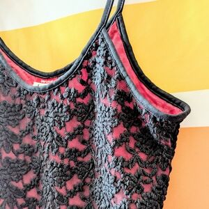Vintage Y2K Lace Cami Tank Top Black Crimson Red Whimsigoth Witchy Goth Floral L