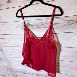 Vintage Y2K Lace Red Sheer Floral Embroidered Camisole Vneck Top 2X