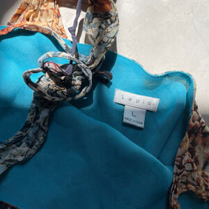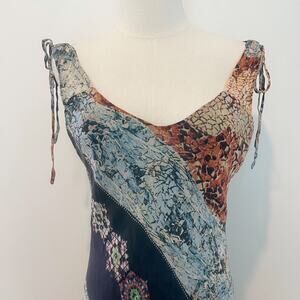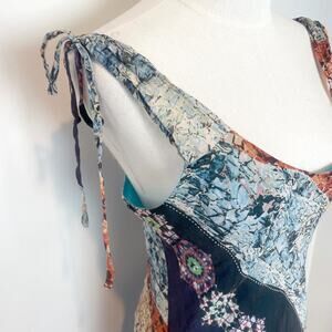 Vintage Y2K Lapis Silk Patchwork Whimsigoth Fairy Grunge Mermaid Boho Dress L