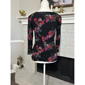 Vintage Y2K Large Old Navy Perfect Fit Floral Black/Pink/Red Ruffled Shirt