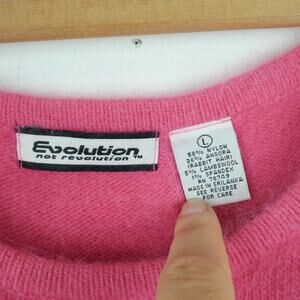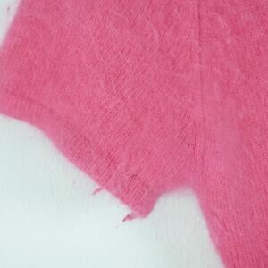 Evolution Vintage Y2K Large Sweater Pink Angora Fuzzy Fluffy Secretary Pinup Rave Girlie Crop
