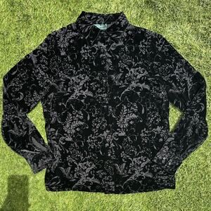 Vintage Y2K Lauren Ralph Lauren WhimsyGoth Sheer Paisley Velvet Button Blouse Sm