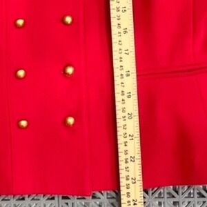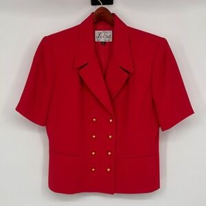 Keywords: Le Suit, red blazer, double breasted, short sleeve, gold buttons, tailored, business casual, workwear, professional, chic, sophisticated, summer blazer