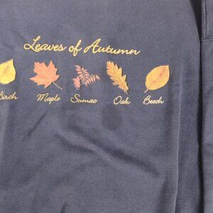 Vintage Y2K Leaves of Autumn Oak Maple Birch Graphic Navy Blue Pullover Crewneck Sweatshirt Size XL