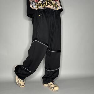 Vintage Lebron Nike Sweatpants Jet Black Polyester White Ankle Logo Baggy Wide Leg has Ankle Zippers to Flare Y2K