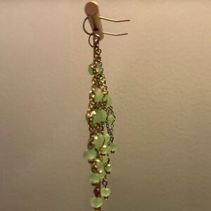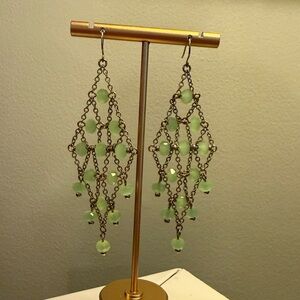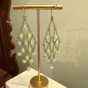 Vintage Y2K Lee Angel Silver Green Beaded Chandelier 3” Drop Earrings