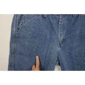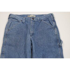 Vintage Y2K Lee Mens 36x32 Distressed Relaxed Wide Leg Dungaree Denim Jeans Blue