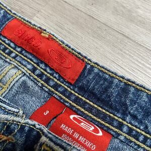 Vintage Y2K Let me be Blue Jean Denim Mini Skirt Size 3 Front Slit