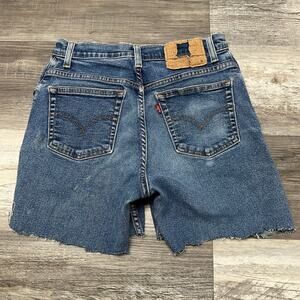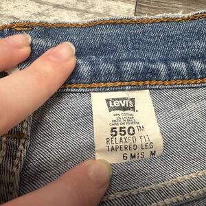 Vintage Y2K Levis 550 Blue Womens 6 Distressed Cutoff Jean Shorts Jorts Red Tab