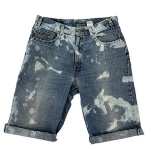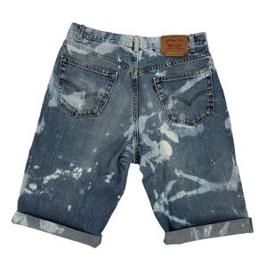 Vintage Y2K Levi’s 550 Cutoff Shorts Bleach Dye Blue Denim 36 Waist