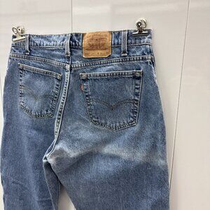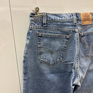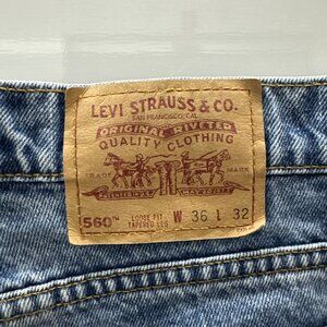 The Vintage Y2K Levi's Men's Jeans 560 in size 36 feature a relaxed fit with a tapered leg, perfect for a laid-back and trendy look. Made in the USA with cotton denim, these light wash jeans are easy to care for and have a high rise for added comfort. The 5-pocket design adds functionality and style, making them versatile for all seasons. With a touch of retro charm, these Levi's jeans embody the hipster, western, and punk themes of the Y2K era.