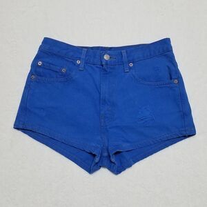 Vintage Y2K Levi's Relaxed Blue Distressed High Waisted Micro Mini. Shorts