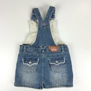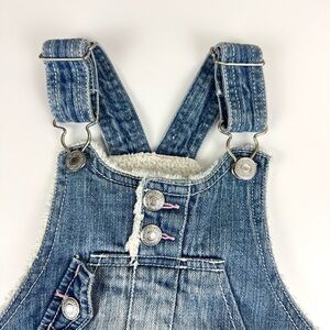 Vintage Y2K Levi’s Toddler Girls Sz 4T Blue Denim Dress Overalls Sherpa Lined