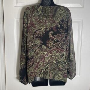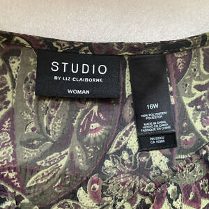 Vintage Y2K Liz Claiborne Studio Shirt Women 16W Black Green Sheer Ruffle Fairy