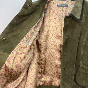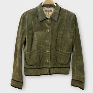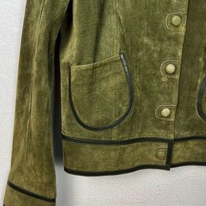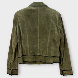 Vintage Y2K Liz Claiborne Suede Leather Jacket Womens Blazer Olive Green Sz 12