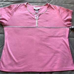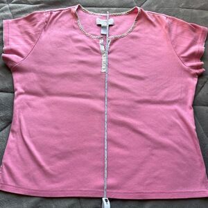 Vintage Y2K Liz Claiborne cottage fairy pink tee with white lace size large