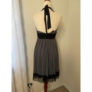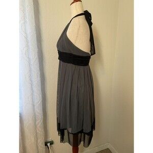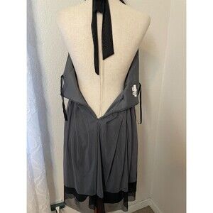 Vintage Y2K London TimesGray Black Halter Cocktail Dress Babydoll 12P Chiffon