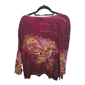 Vintage Y2K Long Sleeve Winery Scenery Maroon Burgundy Graphic Tee Shirt