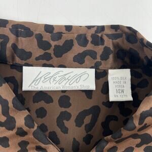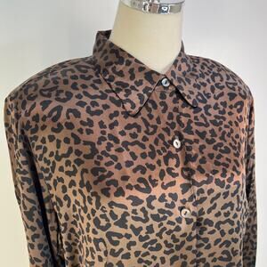 Vintage Y2K Lord & Taylor Silk Brown Leopard Printed Shirt Top