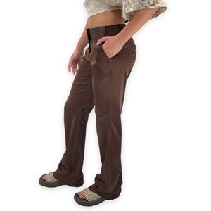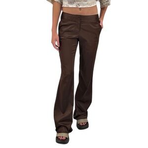 Vintage Y2K Low Rise Flare Leg Pants Dark Brown Satin Trousers Stretch | Size 1