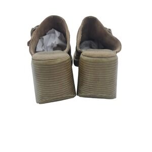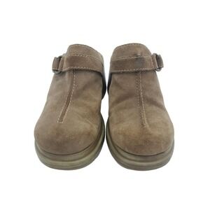 Vintage Y2K Lower East Side 7.5 Brown Suede Chunky Clog Mule Grunge Boho Leather