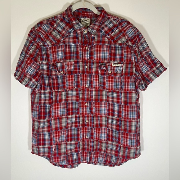 Vintage Y2K Lucky Brand American patchwork western SS pearl snap shirt XL cowboy
