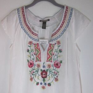 Vintage Y2K Lucky Brand Size S Shift Embroidered Summer Linen Blend Dress