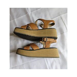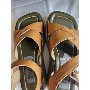 Vintage Y2K MUDD Luna Tan Strappy Leather Chunky Platform Sandals size 7