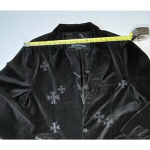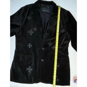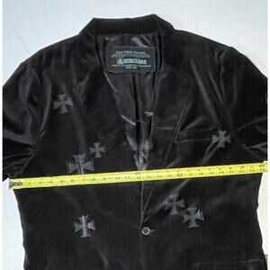 Vintage Y2K Machine Velvet Blazer XXL Cross Embroidered Goth Clubwear Jacket