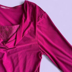Vintage Y2K Magenta Cowl Neck Top with Lace Cami Insert – Fits Medium