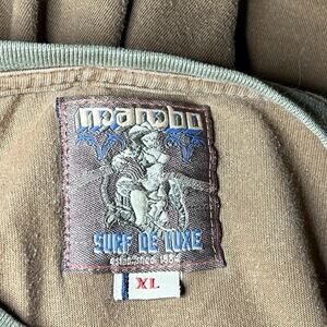 Vintage Y2K Mambo Surf De Luxe Graphic T-Shirt Size XL Army Brown Green Splatter