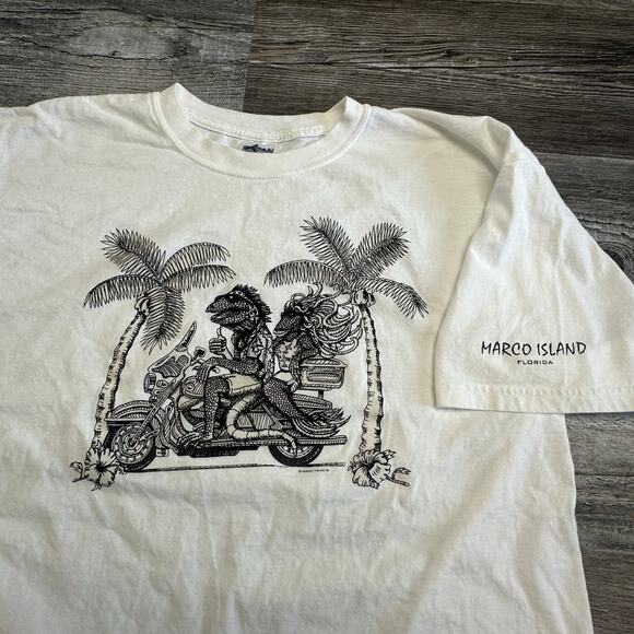 Vintage Y2K Marco Island FL Biker Iguanas White Mens XL Beachy Funny T-shirt